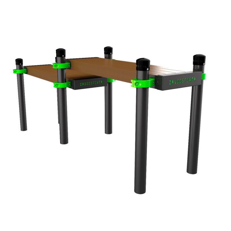 Уличная Скамья гимнастическая горизонтальная разноуровневая (двойная) ZAVODSPORTA* предназначена для установки на уличных спортивных площадках с учетом интенсивной эксплуатации в разных климатических условиях.