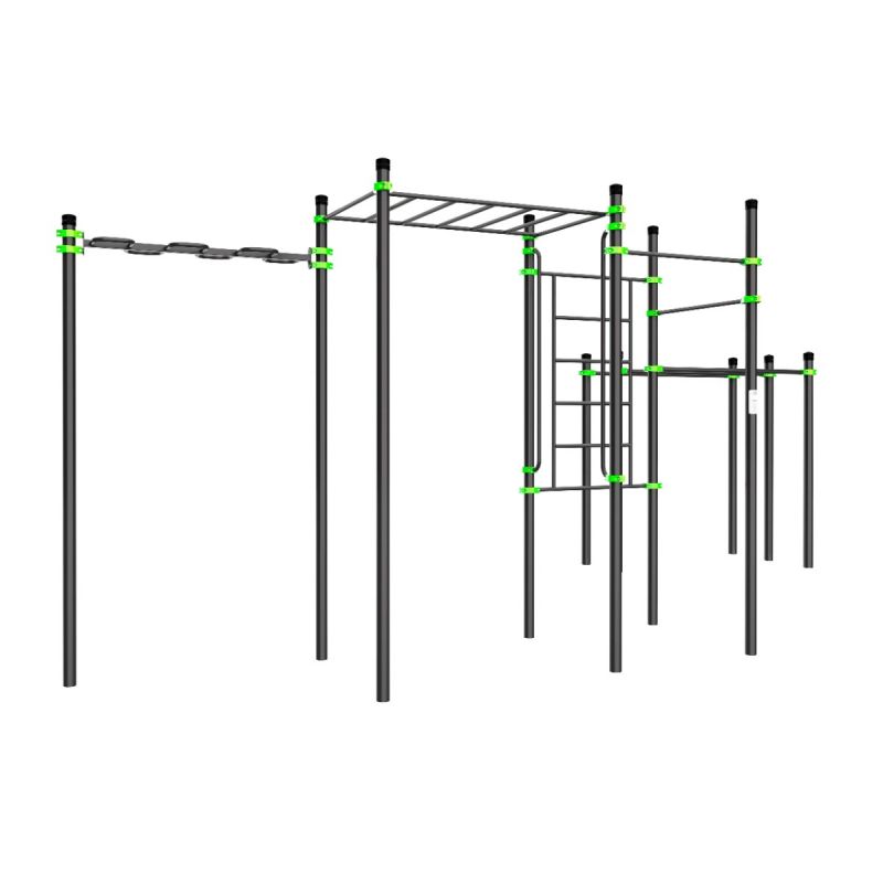 Универсальный комплекс с двумя типами рукоходов для тренировки ловкости и силы. Шведская стенка и перекладины разнообразят тренировочный процесс, а двойные брусья позволяют проводить парные занятия или варьировать высоту отжиманий. Отличное решение для спортивной зоны с высокой проходимостью.