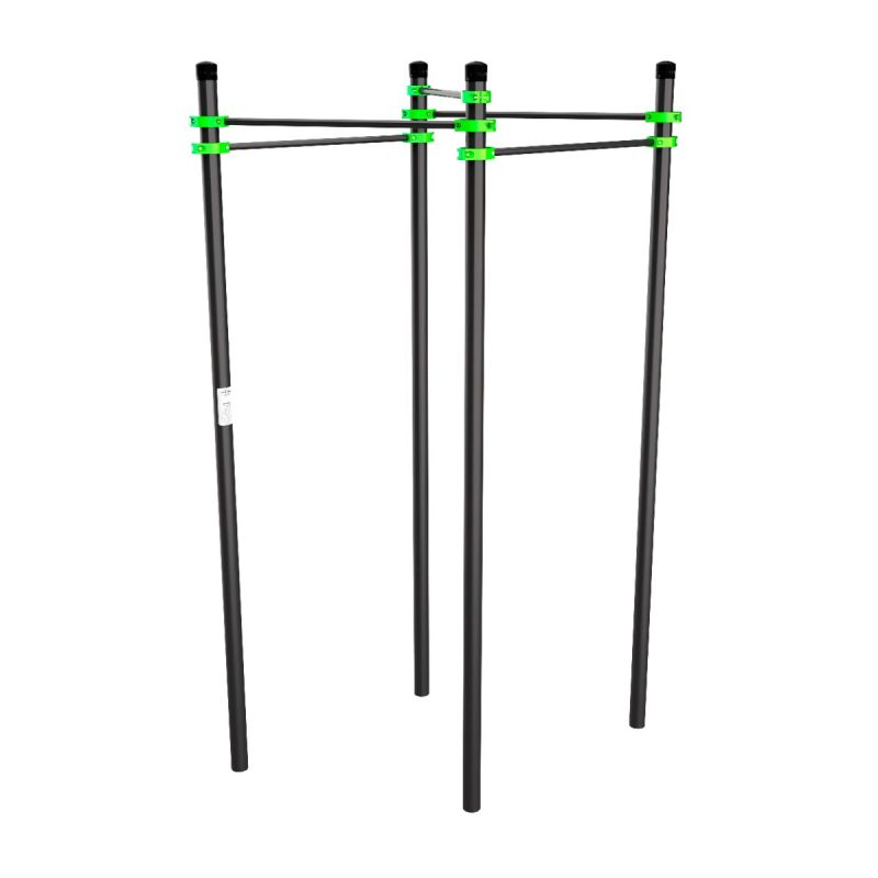 Комплекс из четырех турников с одной диагональной перекладиной. Подходит для подтягиваний, упражнений на пресс и разнообразных функциональных тренировок. Компактная форма делает комплекс удобным для установки на небольших площадках.
